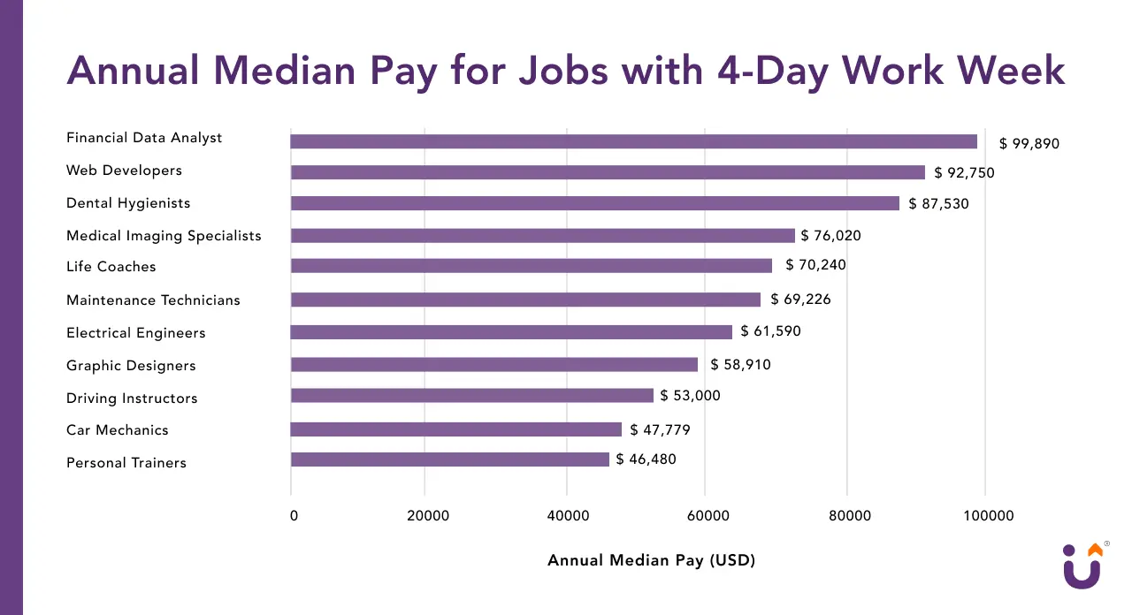 Most production workers and car mechanics are paid hourly, making it easier for companies to offer flexible schedules, including four-day work weeks. While formal education may not be required for these roles, technical training or certifications can increase earning potential.